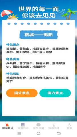空气质量查询:实时提供目的地的空气质量指数,帮助用户合理安排出行计划。