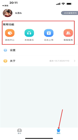 4、我的是个人中心页,含游戏中心、客服等常用功能,支持资料编辑与版本查看,是个人服务管理页面。
