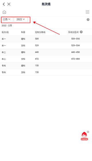 3、选定所属省份或地区,便能获取对应的批次线数据。