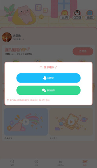 用户在本站下载并打开软件后,可点击右下角“我的”,再点击上方的“未登录”,通过QQ或微信进行账号登录。
