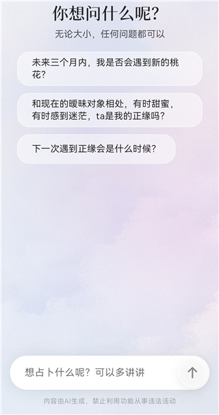 10、滚动到页面底部后,还可以继续输入其他占卜问题,与AI进一步交流。