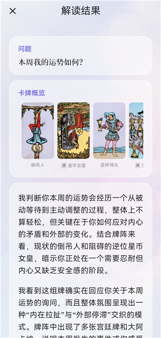 9、随后AI会结合你抽到的牌和提出的问题生成详细解读,内容较多,可以耐心阅读。