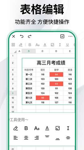 1. 表格创建与编辑:自由创建新表格,或对已有表格进行编辑,支持多种格式的文档。