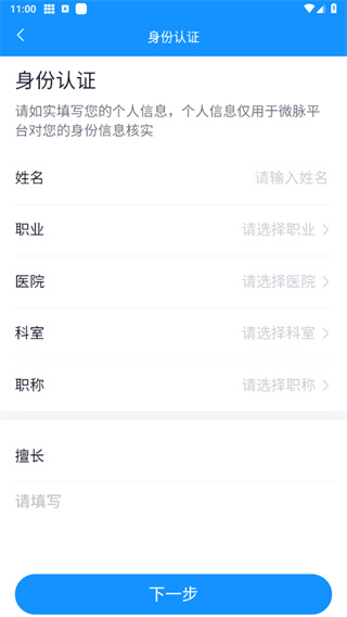 2. 填写完整的个人资料与资质信息,确认无误后点击下一步。