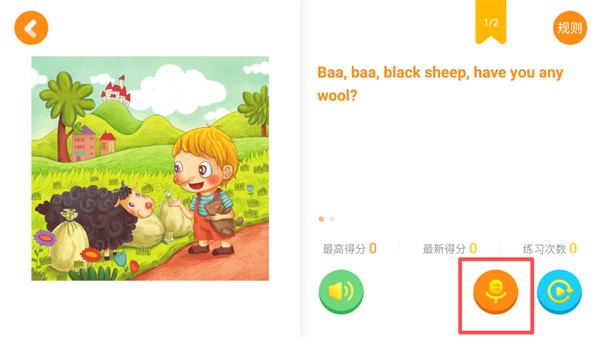4、进入跟读页面后,点击麦克风图标,跟随绘本内容进行朗读练习;