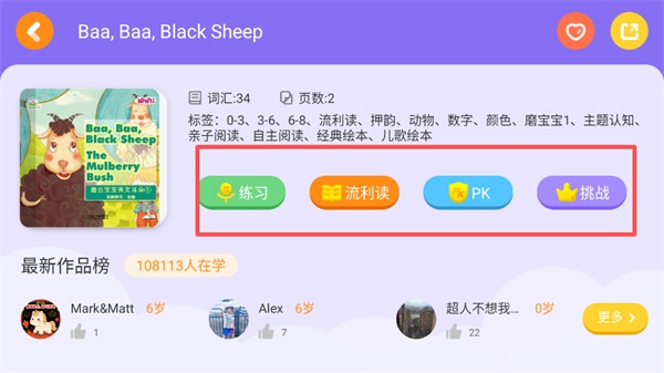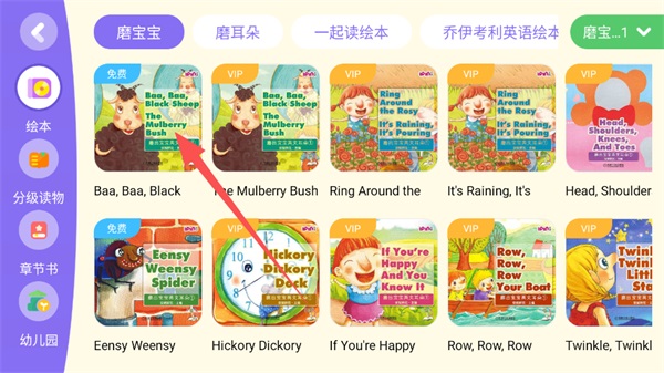 2、在绘本列表中,挑选目标绘本(例如《Baa, Baa, Black Sheep》);