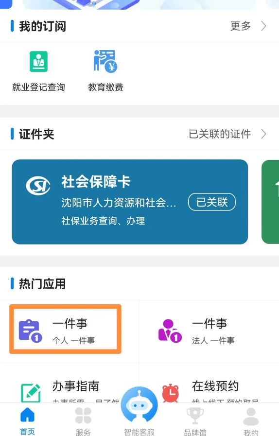 登录成功后,在首页点击“热门应用”菜单栏里的“一件事(个人 一件事)”。
