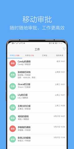 1. 移动审批用户可在手机上随时发起和审批流程,提升工作效率。