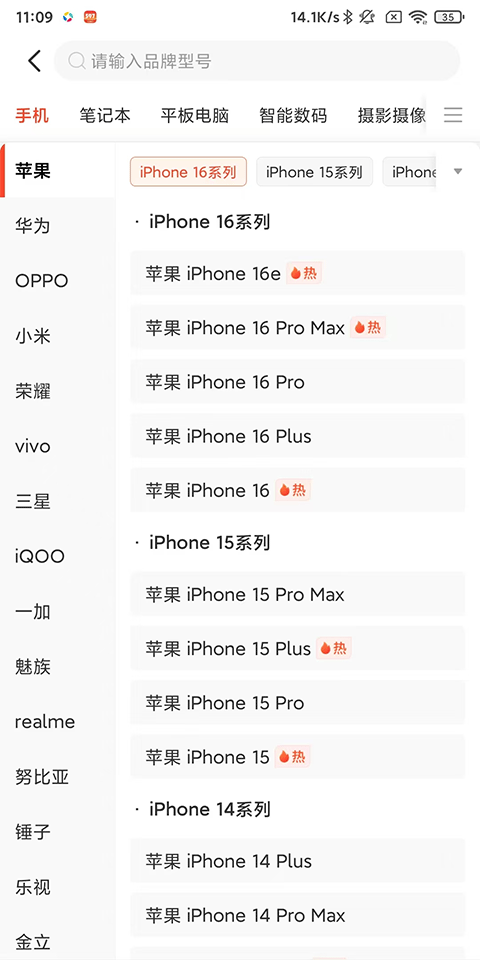 在首页的搜索框中输入并选择自己心仪的手机机型,点击进入该机型详情页面进行查看。