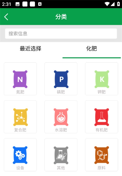 3、在分类页,选择对应化肥品类(如复合肥、氮肥、磷肥等);