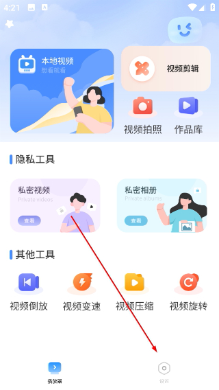 1、打开全能影音播放器,点击右下角设置进入设置页面。