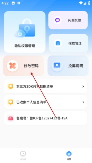 2、在设置页面找到修改密码,点击进入密码验证界面。