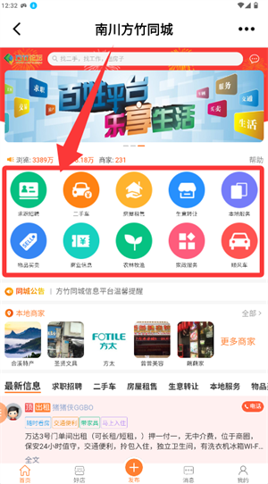 在首页选择“同城信息”功能,即可进入本地生活服务平台。