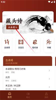 1、打开软件在首页找到【藏头诗】点击进入。