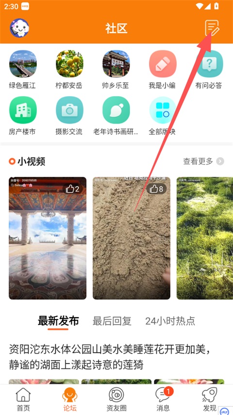 4、帖子会自动发布到你选的那个版块,在该版块的「最新发布」里就能看到。
