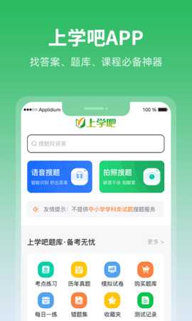 1. 搜题找答案支持语音和拍照搜题,快速检索超2千万试题资源,答案准确率高。