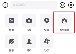 2、在弹出的功能菜单中,选择“阅后即焚”选项。