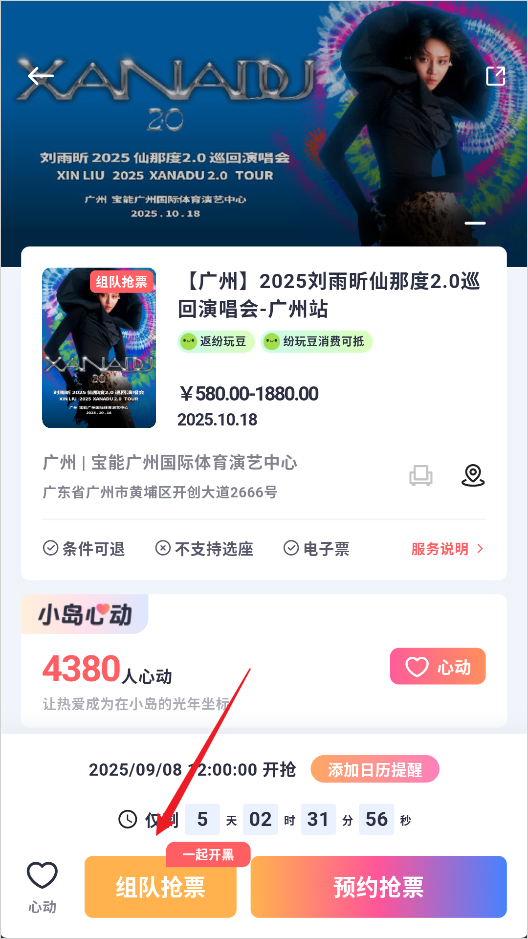 选择合适的演出场次,完成付款操作,即可成功抢票。