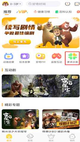 2. 优质动画资源平台上有上万小时的优质动画,包含熊出没、熊出没之古宅探宝等热门IP,孩子们可以在观看中学习。