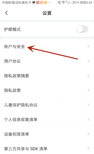 找到“账号与安全”选项;