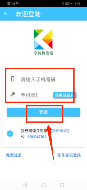 在登录页面输入手机号码,并获取验证码后填入,点击“登录”按钮完成身份验证。