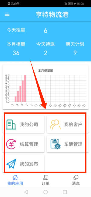 成功登录后进入首页,可查看柜量数据,还能对物流事项进行管理。