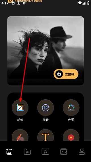 1、进入拍照图片编辑界面,点击裁剪工具即可对图片进行基础的裁剪调整。