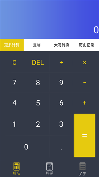 在首页可看到标准计算工具,直接使用即可完成基础运算;