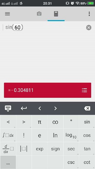 在 Photomath 的计算键盘中可以看到,该 APP 能够实现多种运算。