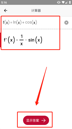 我们利用拍照扫描或计算器输入目标函数,以“cos(x)= 1”为例,填写完成后点击“显示答案”。