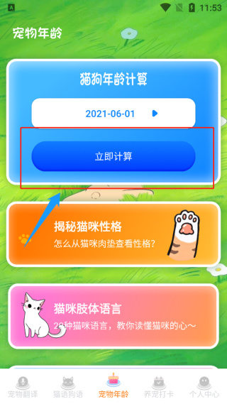 1、打开翻译器软件后,在首页找到并点击【宠物年龄】功能入口;