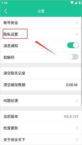 1、在“我的”界面点击“设置”按钮,这个时候就会弹出一个“设置”对话框,然后选择“隐私设置”。