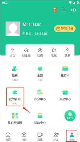 1、选择“我的”,点击“我的补贴”.