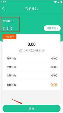 2、在这个界面一般会出现自己能够提现的金额,用户只需要点击“结算”即可。