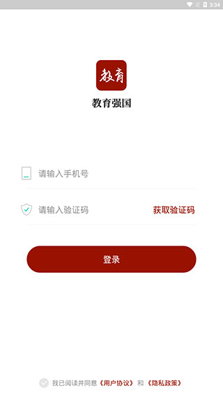 登录软件:打开教育强国 APP,勾选同意协议,以验证码方式进行登录。