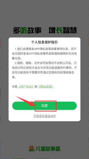 首次启动应用时,在弹出的《个人信息保护指引》窗口点击【同意】,即可进入登录页面。