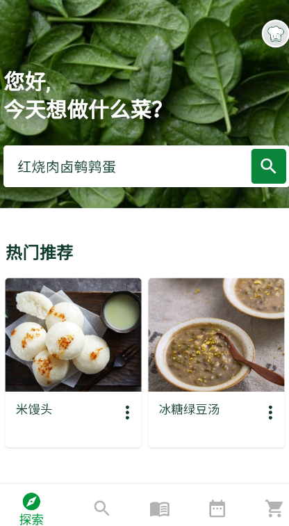 1. 使用手机号码完成注册并登录后,在“探索”页面点击搜索栏,即可输入菜名查找你感兴趣的食谱。