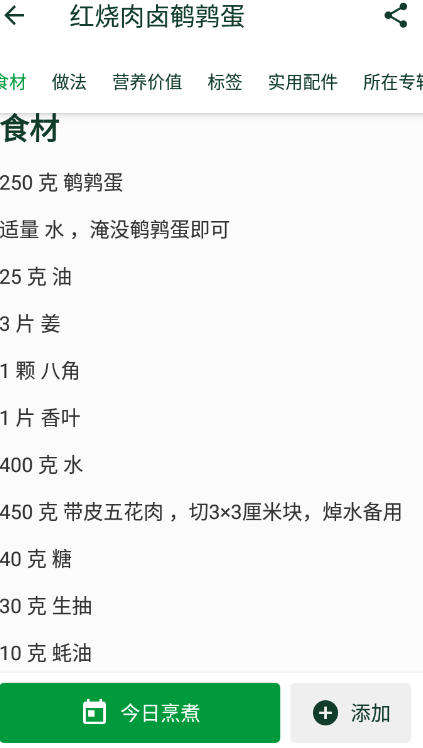 3. 点击“今日蒸煮”按钮,可以将当前食谱加入收藏夹。