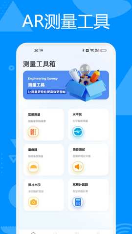 AR测量仪app是一款集多种测量功能于一体的实用软件,主要用于高度测量、水平测试、角度测量、噪音大小检测等,能够满足日常生活中的各种测量需求。软件还提供了挂画校准、放大镜、尺子、手电筒、指南针等多种常用功能,是您生活中的得力助手。AR测量仪还具备灵活的单位换算功能,使得用户在使用过程中更加方便快捷。
