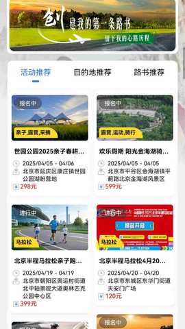根据个人喜好选择活动主题,如露营、骑行等,系统会根据标签筛选出适合的目的地,方便用户进行选择。