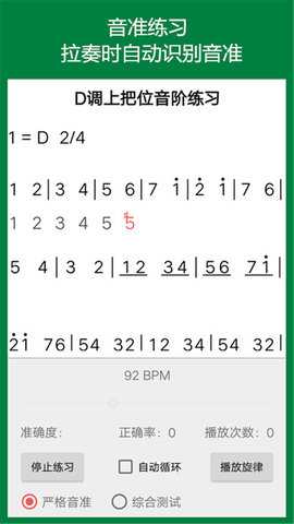 4、在练习过程中,应用会实时监测你的音准,若发现错误,会给予提示,帮助你及时纠正。