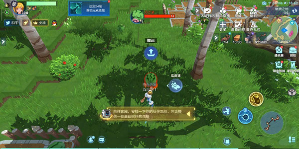 在部分剧情任务中,会要求玩家搬运箱子,此时玩家不能乘坐宠物进行搬运。当玩家靠近可搬运的物体时,屏幕上会出现一个搬运按钮,搬起箱子后又会显示一个放置按钮,玩家可以自由移动箱子,具体操作可参考瓜皮猪的搬运方式。