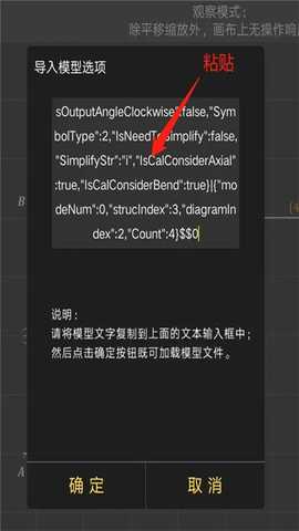 把前面复制到剪贴板的文本内容想办法粘贴到弹出的窗口中(电脑端可以直接按Ctrl+V),再点击“确定”即可加载之前被导出的模型文件了。