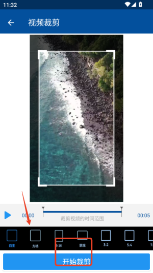 成功导入视频后,就进入了编辑界面,使用旋转功能,将视频调整到正确的方向;要是视频中有不需要的片段,还能使用剪切工具进行裁剪。