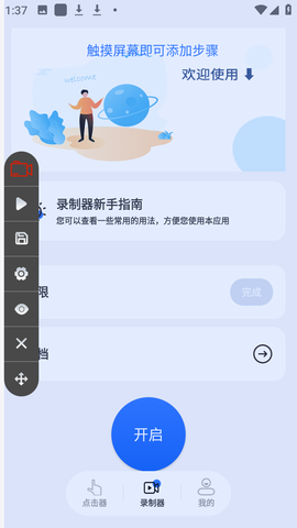 要设置操作,点击下方的录制器,点击录像机图标开始绘制手势操作。