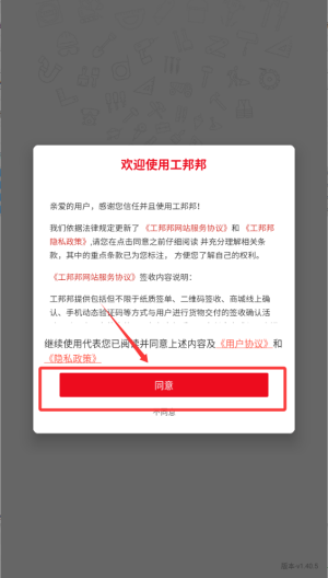 进入页面:点击同意按钮,进入工邦邦软件页面。