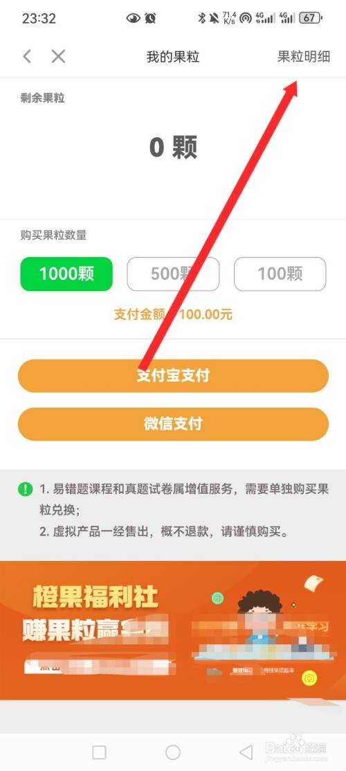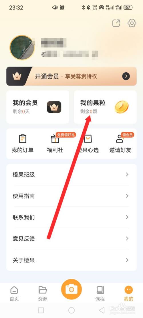 在弹出的页面上方找到“我的果粒”选项,再次点击。