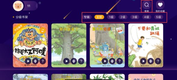 在首页可选择需要阅读的书本,可按照系统分好的等级来选,也可自行搜索。