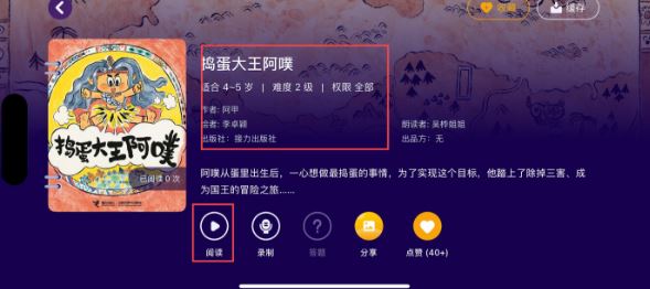 点开任一书本后,能看到书本的基本信息,点击“阅读”就可以开始听书。