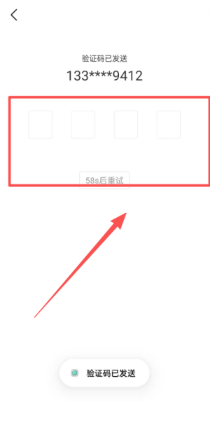 查看手机短信并输入收到的验证码,若未收到,可等待58秒后尝试重新获取。